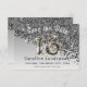 Skicka en snyggt "Spara datumet" till dina vänner och familj för din sextonde födelsedag med det här moderna svarta glitter som hamnar på sidan av en silver-övertoningsbakgrund.