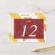 Hjälp dina gäster med dessa moderna bordskort till bröllopet. Smakfulla fallande ginkgo-blad med en färgblock-overlägg pryder dessa kort med ett tydligt och distinkt nummer. Ange ett bordnummer och lägg till ett kort i din varukorg. Gå tillbaka och ändra bordnumret så att du har ett kort för varje bord. Nummer serialiseras inte på egen hand. Mängdrabatten gäller fortfarande även om varje kort du köper kommer att ha ett annat nummer. Det finns ingen minsta mängd så du kan köpa den exakta mängd du behöver för din stora dag. Dessa postkortstorlek plana kort mäter 4,25 "x5,6". Dessa är inte vikta kort. Du behöver platshållare för att hålla upp dessa bordskort så de syns.