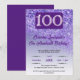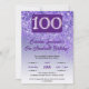 Fallande Lila Glitter 100:e Födelsedagsfesten Inbjudningar
