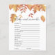 Inbjudan lämnar dina gäster med den här vattenfärgen nedfallande den hösttematiska inbjudan till babydusch. Använda designen verktyg för att redigera texten, ändra teckensnittet färg och stil för att skapa en unik inbjudan av typen inbjudningsdesign. Matchande objekt är tillgängliga. SVAR: KRYSSLINGAR, GRÅTANDE, NAPPAR, FLASKA, NATTLJUS, LULLABY, BARNVAGN, EPIDURAL, BURP, HÖG ORDFÖRANDE, DIAPER BAG, SWADDLE