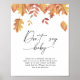Inbjudan lämnar dina gäster med den här vattenfärgen nedfallande den hösttematiska inbjudan till babydusch. Använda designen verktyg för att redigera texten, ändra teckensnittet färg och stil för att skapa en unik inbjudan av typen inbjudningsdesign. Matchande objekt är tillgängliga.