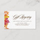 Dela din önskelista med detta anpassningsbara bröllopspresentkort. Den har en akvarellkrans av löv i höstskuggor och ett matchande mönster på baksidan. Detta anpassade presentkort är perfekt för höstbröllop, baby shower, brud shower och andra evenemang. Matchande artiklar finns tillgängliga.