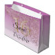 En elegant ro guld glitter som faller på en dammig rosa gradientbakgrund. I mitten finns det ett unikt glitter nummer 16 som motsvarar stil i presentsäcken. Kontakta mig om du behöver hjälp med designen, lägg till något eller ändra/ta bort numret eller något annat.