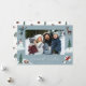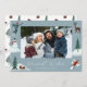 Ett sött helgdag-kort med vågräts foto omgivet av illustrationer av en person som kastar en snöboll, en snögubbe, gräs träd, en hjort, en sled med presenter och en person som skapar en snö ängel. "varmaste Önskemål" visas i ett vitt, handskript med familjen namn som visas nedan.