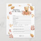 Fira med den här fallande nallen, den där babyduschen party! Söt nalle med vattendjup med höstpumpa i tassar på höstlövning. På baksidan av kortet finns höst löv. Matchande objekt är tillgängliga.