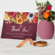 Tack för elegantens burgundi har du ett kort gräns av blommor på andra sidan. Bränd orange, ljusröd, gyllene gult och ett vitt. Tack är skrivet i en bra förklaring till varför trendigets skript. Med två linjer text nedan kan du anpassa ditt meddelande. Det finns naturligtvis utrymme för dig att även lägga till en handskriven på insidan. Det här objektet finns i samlingen Burgundy Fall-blommor.