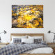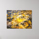 Ett närfoto fångar en ström av vatten som flyter över en säng av vibrerande gult höst löv. Löven är delvis nedsänkta, deras kant krymper med ljus som reflekterar över vatten yta. Vatten är tydligt och bubblande och skapar en känsla av rörelse och energi. Den allmänna stämningen är säker och fredlig, vilket framkallar en känsla av lugn och skönhet i naturens cykel.