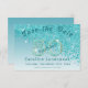 Skicka en snyggt "Spara datumet" till dina vänner och familj för din 50:e födelsedag med det här moderna tealblåa glitter som faller på sidan av en tealbakgrund.
