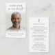 Fingerkort för fotopapperkort för Kor för begravning. Behålla minnet av en älskad nära med det här bankkortet för personlig av anpassningsbar som innehåller ett uppskattat foto, titeln FOREVER IN OUR HEARTS, namn och data på framsidan och en redigerbar bön eller ditt minnesmeddelande som accentueras med ett kor (exemplet visar dikt "Fotavtryck i Sand". Med sin enkla, men ändå elegant, klassiska svarta och vita design och moderna, handskrivna typografi gör den en meningsfull keepé vid en begravning, minnesgudstjänst eller Firande i Life och erbjuder komfort och en varaktig hyllning till familj och vänner. Den lilla och bärbara storleka på 3,5 x 2 tum (plånboksstorlek) gör det bekvämt för nära och kära att bära med sig den som en påminnelse om din älskades liv och själ. Anpassningen gör varje kort unikt.