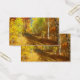 En överodlad väg som under en solig höstdag genomsyras av fågelskogen. De svarta och vita trunkerna i träd kontrasterar mot löv och gräs i alla skuggor av guld, från blek gult till djup orange, upplysta av sol strålar som strömmar genom grenar.