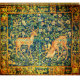Deers,grönt gult blommigt snurrar blommor digitalt från antika flamländska tapestry...