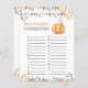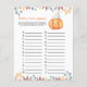 "En liten pumpa är på väg. Fira med den här tecknaden i baby, pumpa temat för babyduschen party! Vattenfärgssöt tecknad kawaii-pumpa med hösthatt (hatt) och höst löv. På baksidan av kortet finns höst löv.