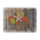 Fall färgad Jute löv omger två stjärnor och två små hjärtan vilar på rustiska staket. Sammansättningen skapar lagrar i struktur och stil till teckningen. Originalfotot maskeras så att det blandas sömlöst med en mängd olika bakgrunder.