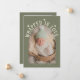 Elegant och modernt födelseattest för jultema med en text som säger "inslagna i kärlek" med stjärnor. Det här är ett födelsemärke för julhelgerna! Lägg till foton, födelsestatus och ett meddelande! Bakgrunden är sage grönt.