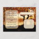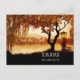 Ett elegant Spara datum-vykort med ett färggrant höstträd och festlig lykta med utsikt över en romantisk sjö. Baksidan visar samma höstscen med två bilder av valfria textbakgrundsfält. Om du inte behöver dem kan du ta bort dem (till exempel om du använder adressetiketter).