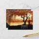 Ett elegant Spara datum vykort med ett färggrant höstträd och festlig lykta med utsikt över en romantisk sjö. Baksidan visar samma höstscen med två bilder av valfria textbakgrundsfält. Om du inte behöver dem kan du ta bort dem (till exempel om du använder adressetiketter).