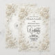 Sätt tonen för en sofistikerad union med denna skulpturala blomsterdesign. Perfekt för traditionella par som söker storslagenheten hos stenträdgor i elegant tryck.Denna design har en mästare "trompe l'oeil" visuell effekt som simulerar utseendet på handgjord gipsrelief eller skulpterad sten. Konsten visar intrikata virvlande vinrankor, rosor och utsökt filigree i en monokrom palett av mjuk elfenben, kräm och champagne toner. Kanten ramar in texten med ett dimensionellt utseende, skapar skuggor och höjdpunkter som antyder en taktil, upphöjd yta.Detta är en platt utskriven bild med en visuell textureffekt, inte faktiskt upphöjt material, prägling eller 3D-objekt.