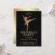 Överraska dina gäster med denna eleganta födelsedagsinbjudan med en guld balettdansare mot svart bakgrund. Lägg helt enkelt till dina evenemangsuppgifter i denna lättanvända mall för att göra den till en unik inbjudan. Vänd kortet för att avslöja en falsk guld folie-struktur på baksidan av kortet.