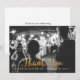 Detta bröllopsfoto tackkort har ett stort foto från ditt bröllop med "Tack" i falsk guld kursiv text och ditt eget meddelande på baksidan.
