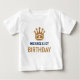 Elegant baby-t-shirt med en vacker falsk guldglitter krona. Anpassa den med ditt barns namn.
