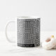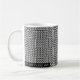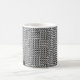 Falsk sticka mönstrad mugg i svartvitt. Andra objekt i denna patter är kommande.