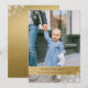 Ett perfekt kort för helgdagar med vacker falsk guld folie och vita snöflinga accenter. Lägg till din information i mallformuläret. Du kan lägga till foton och text på baksidan av kortet med funktionen Anpassa den.