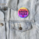Söt badge-nål till din möhippa. Överst på märkningen står namnet på vännen med rosa bokstäver och svart kontur, detta är en mall där du kan ersätta namnet i textrutan med ditt eget. Nedanför med lila text och svart kontur står orden Bride Tribe. Längst ner på märkningen finns ett sött rosa hjärta med svart kontur som fullbordar den totala looken. Bakgrunden är en falsk glitterdesign i en övergång mellan gult, rosa och lila.