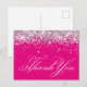 Falskt gnistrande silver glitter varmt rosa tack vykort