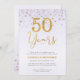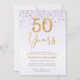 Enkel 50-års bröllopsdag inbjudan med en falskt guld 50 år dekorativ text rubrik och några prickar i den övre delen av inbjudan på en vitaktig bakgrund.