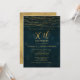 Denna 50-årsjubileum för bröllop inbjudan är enkel men elegant. Den har samma falska guldlyktor och kalligrafisk rubrik högst upp på inbjudan. Bakgrunden är en mycket mörkblå texturerad bild och baksidan av inbjudan är en falsk guld glitterstruktur. Denna eleganta falska guld kalligrafi 50-årsjubileum för bröllop inbjudan är redo att anpassas. För variationer av denna design, besök butiken.