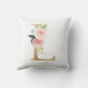Kvinnlig och elegant blommig L monogram kudde med akvarellillustrationer av vita blommor, grönska och falskt folie monogram. Personliggör genom att lägga till ett namn eller en kort fras. Denna monogram blommiga kudde är perfekt som en personlig gåva.
