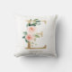 Feminint och elegant blomstermönsterkudde med vattenfärgillustrationer av rosablommor, grönska och falskt foliemonogram. Personalisera genom att lägga till ett namn eller en kort fras. Denna monogramblomsterkudde är perfekt som en personlig gåva.