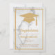 Gratulationer skrivet i fet stil, en fet kant och en examenshatt i falskt guld på en illustrerad marmorbakgrund, accentuerar denna examensannonsering, håller den enkel, elegant och gör den perfekt för manliga eller kvinnliga studenter. Om ytterligare artiklar behövs i denna samling, kontakta oss bara på prettyfancyinvites@gmail.com med din förfrågan.