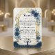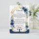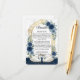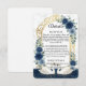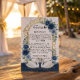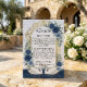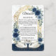 Sätt tonen för en förtrollad kväll med detta eleganta mottagningsdetaljinsats. Med romantiska svanar och djupa, marinblå blommor för ett sofistikerat sagostoff. Denna design har en sofistikerad komposition som börjar med en tryckt vit marmorerad bakgrundstextur överlagd med en utsmyckad, falsk guldpräglad filigranbåge. Den övre ramen är prydd med akvarellrosor i nyanser av marinblått, skiffer och dammig blå, accentuerad med salvia gröna eukalyptusblad. Vid basen flyter ett par vita svanar på en digital illustration av vatten, som reflekterar en himmelsk natthimmel översållad med tryckt guldglitter. Typografin blandar en elegant kalligrafiskrift med traditionell serif brödtext i en formell
