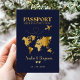 Bjud in dina nära och kära på ett äventyr för livet med denna falska guldhjärtade flygplanspass bröllopsinbjudan. Designad med ett chic resatema är denna inbjudan perfekt för par som planerar ett destinationbröllop. Den eleganta guldhjärtdetaljen i kombination med en stilren passinspirerad layout sätter tonen för en romantisk resa runt hela världen.