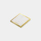 En enkel men modern design som kombinerar samtida trender: marmor och falskt metall (guld). Den har en fyrkantig falsk guld folierad ram med vitt marmor inuti. I den nedre delen, strax ovanför ramen, finns ett namn skrivet med en gyllene kalligrafisk stil.