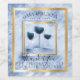 Roliga etiketter till ditt bröllopsfavoritvin, med en trio vinglas och marmorliknande bakgrund i populär blå färg, med falskt guldtrim, personliggjord med namnen på bruden och brudgummen, och texten du väljer.