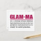 Falskt rosa glitter Glam-Ma vykort - För vissa av oss kommer det naturligt att vara glamourös och fantastisk hela tiden. Visa din inre diva och släta ut glamourösa attityden med detta falska glitter rosa Glam-Ma vykort. Med sin definition: "Glam-ma är en kvinna vars barn har fått barn men är alldeles för vacker och glamourös för att bara kallas för mormor". En mycket genomtänkt idé till mors dag, födelsedag eller julkort till mormödrar. Håll dig klassisk och låt alla veta att ålder bara är ett sinnestillstånd!