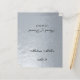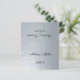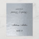 Ett falskt silverbröllop namnkort med gästens namn och bordnummer tryckt på framsidan och brud och brudgum namn och bröllopsdatum tryckt på baksidan (dvs den andra halvan, innan den viks). All text är i svart, kalligrafisk stil.
