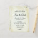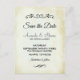 Ett bröllop spara datum vykort med en enkel men elegant design. Satt på en krämfärgad vintage-utseende pergamentpapper bild. Mjuka bruna åldrade kanter ger det en chic gammaldags vibe. Fin vintage-utseende dekorativa avdelare med din personliga text emellan. Personligt meddelande på baksidan och din returadress också.