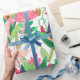 Fält av blommor och växter med små hus, men presentpapper