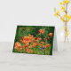 En samling av fältliljar som står mot mörk - gröntlöv. En enkel meddelandeinsida kan redigeras eller tas bort som krävd.