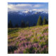 Fält av lupin, Mt. Olympus och moln vid Fototryck