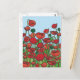 Vacker Poppy-blomman fält med ljusröda vallmo på en övertoningsblå och grönt bakgrund.