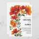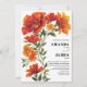 Den här inbjudan från elegant bröllop har fantastiska blommigtar på bakgrunden med klassisk typografi. Denna utformning är perfektens val för en rustik men elegant sen sommaren eller hösten bröllop.
