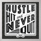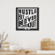 Fält Hockey Hustle, Slå och sluta aldrig Poster Skriv ut. Texten lyder: Hustle, Slå och Sluta aldrig, med en korsad fält-hockeyklubba.