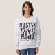sweatshirts i fält hockey och hooded toppar, tillgängliga i olika stilar, för kvinnor, manar och barn! Texten lyder: Hustle, Slå och Sluta aldrig, med en korsad fält-hockeyklubba.