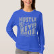 Fält hockeyt-shirts, tillgängliga i olika stilar, för kvinnor, manar och barn! Texten lyder: Hustle, Slå och Sluta aldrig, med en korsad fält-hockeyklubba.