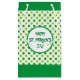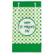 Irländarnas tur är med er, med grönten klöver mönster. Det finns ett mörk grönt band överst och grund i den här designen. Texten lyder "Lycklig St. Patrick's Day". Text kan anpassas.