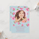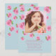 Fina rosa ros är parade med små vita polka dots och lagrade på ljusblå bakgrund. Ett fyrkantigt fotofönster innehåller ditt favoritfoto. Lämpligt för alla åldrar.Kortet är enkelt att anpassa med din ordalydelse, ditt teckensnitt, ditt teckensnitt, färg och ditt val av sex papprare typer.